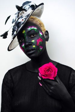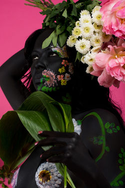 This is an ongoing series. Each muse featured is body painted, adorned with flowers, and then photographed. The significance of this series is to highlight the Black and African diaspora as works of art to be admired and celebrated, highlighting the beauty that was always there but tainted through the white gaze. This series counters the negative narratives and stereotypes perpetrated against the Black and African diaspora in the media.